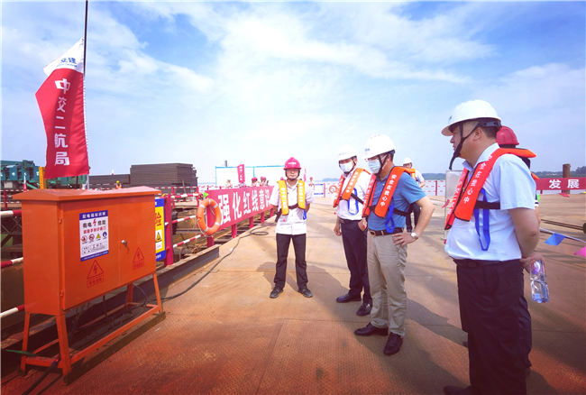 6月19日,中交二航局党委副书记、工会主席张文胜率队以“四不两直”方式分别到鄂州基础设施EPC项目部、花马湖二期项目部进行安全检查督导。