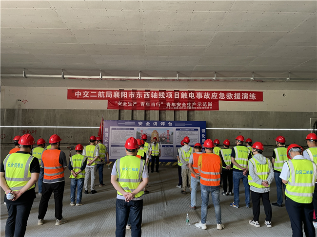 6月22日,结构公司在襄阳东西轴线项目部开展触电事故应急演练。
