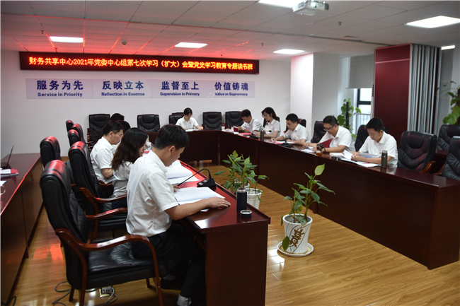 7月12日,财务共享中心党委理论学习中心组召开2021年第7次集体学习(扩大)会议,专题学习贯彻习近平总书记在庆祝中国共产党成立100周年大会上的重要讲话精神。财务共享中心领导班子成员、各部门主要负责人参加会议。