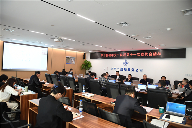 2021年12月31日,五分公司召开学习贯彻中交二航局第十一次党代会精神专题会议,会议由五分公司党委书记、总经理李志成主持,五分公司领导班子成员、各部门负责人、总部全体员工、各基层项目部在现场或通过视频参加学习。