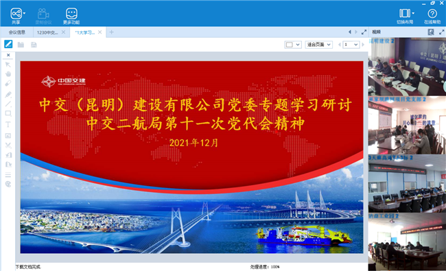 2021年12月30日,昆明建设公司召开专题会议学习研讨中交二航局第十一次党代会精神,昆明建设公司领导班子成员、总部部门负责人、项目班子成员参加学习。