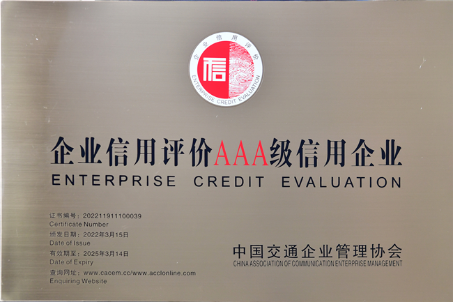 中国交通企业管理协会的信用评价旨在贯彻落实国家信用体系建设要求,提高企业诚信意识和信用管理水平。评价内容包括企业竞争力、经营状况、管理能力、财务状况、信用记录等,共分为AAA、AA、A、B、C五个等级,其中AAA级信用企业定位为经营状况良好,发展前景广阔,具有优秀信用记录的企业。评价结果可作为企业市场准入、资质和资格管理、投标资格审查、重点扶持优势企业和行业评优评先的重要依据之一。(程竹)