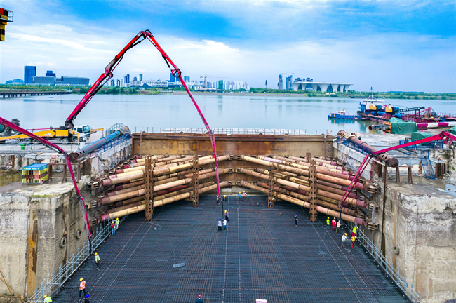 目前,鱼梁洲工区已完成全部浇筑任务;西汊工区已完成210米主体结构施工;樊城工区辅道路面铺设完毕,正在进行减光罩安装;水上工区已完成西汊水域护面层回填,沉管回填工作整体进度已达80%。(许豹 陈雅林 向昌文)