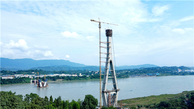 建设期间,中交二航局项目团队面对施工道路运输条件受限导致混凝土保供存在较大困难、主塔墩位处地质坚硬、上塔柱内衬板及索导管施工工序转换频繁等施工难题,同时受洪水、高温、疫情等影响。项目团队在川江上与江水赛跑,采用渡船运输混凝土罐车等措施,保障混凝土供应和合理配置资源,完成了塔柱在一个枯水期出水的施工任务,避开了川江汛期对北岸主塔施工的不利影响。