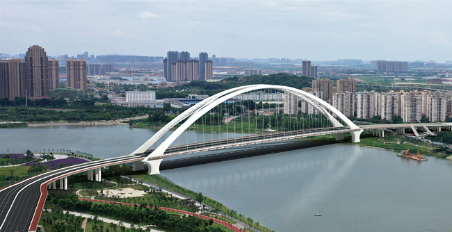 该项目西起于武汉黄金口大道什湖路,东止于古田一路长云路口,线路全长4123米,由跨汉江主桥、两岸引桥、汉阳岸接线、汉口岸接线组成,其中跨汉江主桥长855米,为380米跨下承式简支钢箱提篮拱桥,设计为双向6车道,桥面宽41.5米。