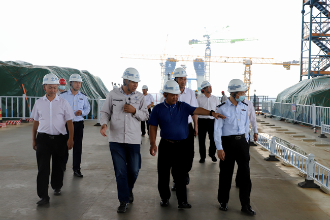 9月16日,中交集团党委常委、副总经理王建到中交二航局江苏常泰长江大桥项目开展国庆节前、“二十大”前安全生产检查,中交二航局党委委员、副总经理罗洪成等陪同检查。