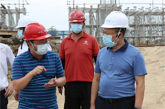 王晓夫深入项目施工现场,对项目施工进度、安全生产、质量管理、文明施工等情况进行了检查,听取了项目负责人关于疫情防控、安全环保、人才培养等工作情况的汇报。