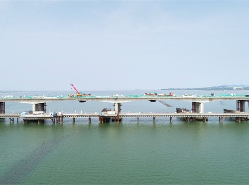 下一步,海陵岛特大桥主体工程将全面进入桥面铺装及附属设施建设阶段。(杨馨雨)