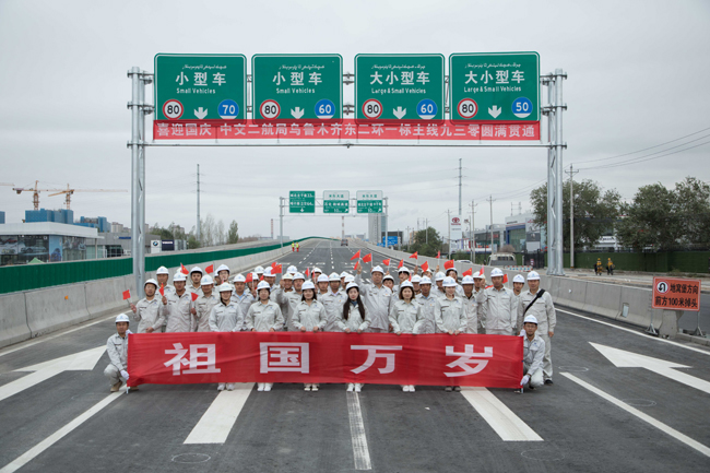 9月29日14时30分,随着压路机的最后一遍辗压,中交二航局乌鲁木齐东二环一标项目提前一天实现主线贯通目标,向新中国成立70周年献上了一份礼物。