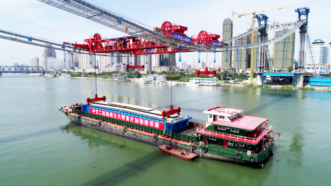 庞公大桥作为襄阳市重点工程项目,全长2.7公里,其中桥长2公里,设计时速60公里。目前全桥加劲梁厂内制作总拼已完成,其中已有60片运至现场。大桥建成后,将极大缓解襄阳樊城到襄城的交通压力,是一项重大民生工程。(葛利龙 刘浪 陈斌)