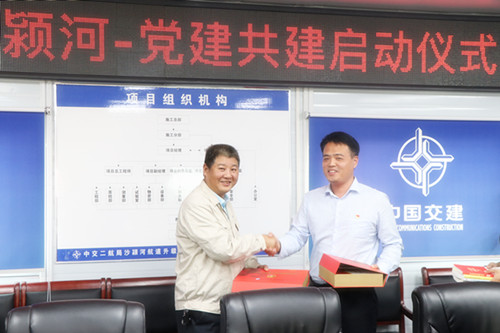 为深入推进“不忘初心、牢记使命”主题教育,积极探索基层党建新模式,形成“优势互补、交流经验、分享资源、共同提高”的党建工作新格局,近日,中交二航局一公司沙颍河项目党支部联合周口项目公司党支部、沈丘县新安集镇党委会,三方达成党建共建单位,举行了“携手共建共治共享和谐平安绿色沙颍河”党建共建启动仪式。