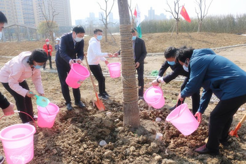近日,随着疫情形势逐步向好,中交二航局承建的湖北省天门市北湖公园迎来了一场特别的植树节活动。湖北省天门市委书记庄光明,市委副书记、代理市长杨兴铭,市人大常委会主任汪发良,市政协主席李启斌等领导与山西省援鄂医疗队天门组代表共同种下了两棵象征两地同心抗疫的友谊之树,寓意“晋鄂情深”。