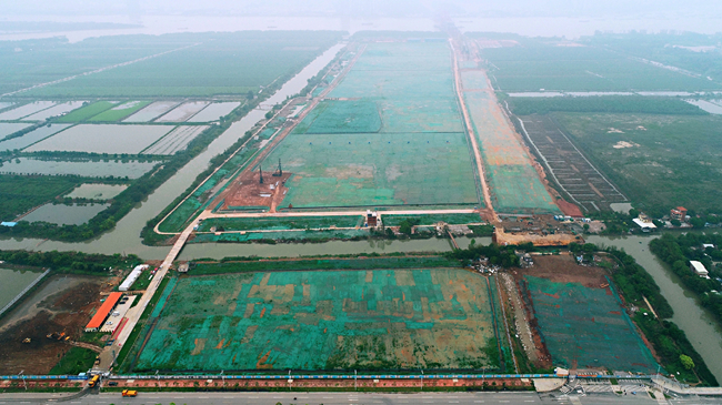 中科院明珠科学园一期土地平整工程项目位于广州市南沙区下横沥水道南侧,珠江街道东部,具体范围南至南方大道,北至规划九路,东至蕉门水道,西至凤凰大道边,面积约1367亩,实际平整面积66万平方米。施工内容主要包括表土剥离及存放、场地回填、围堰施工、排水沟施工以及配套临时设施施工等。