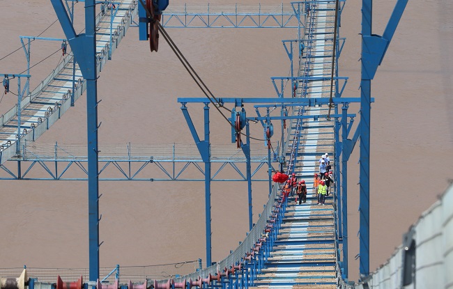 7月31日,中交二航局承建的宜昌伍家岗长江大桥开始主缆架设施工。