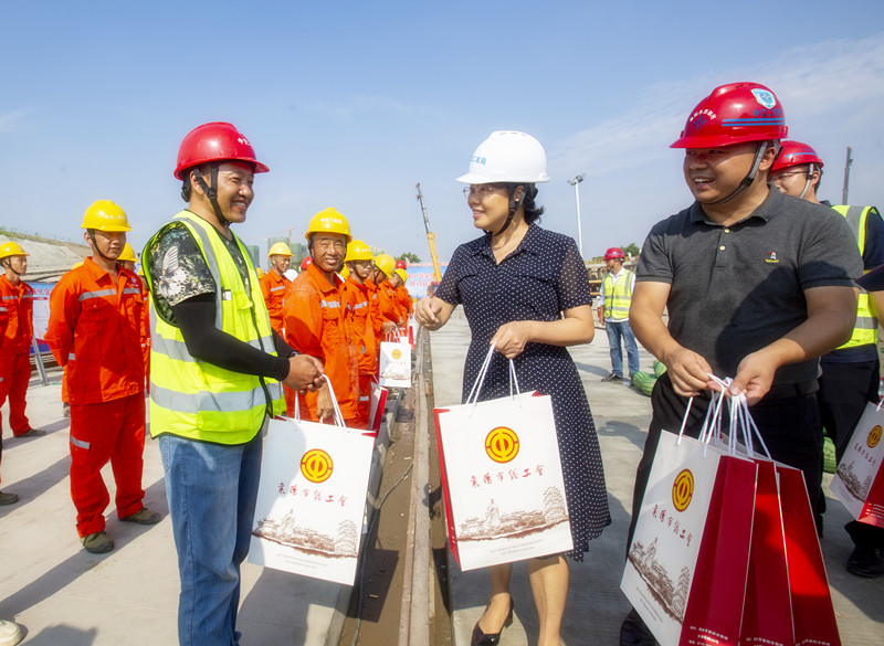 在西汊干坞预制场,程武一行听取了项目现场负责人关于工程进展和职工之家建设情况的汇报,查看了现场“安康驿站”,对酷暑下辛勤工作的建设者表示感谢。程武肯定了项目安全生产标准化和安全保障措施规范化,对项目部在施工一线设立“安康驿站”的举措给予赞赏,并提出三点要求:一是合理安排作息时间,避开酷暑;二是做好劳动保护,落实防暑降温措施,充分保障工人权益;三是平衡进度与安全生产的关系,避免疲劳作业,营造平安舒适的工作环境,确保一线工人的安全和健康。她激励大家在做好安全防护的前提下,充分发扬工匠精神,建设精品工程、品质工程,为夺取疫情防控、经济社会发展双胜利贡献力量。襄阳市总工会党组书记、副主席汪艺琼,市总工会党组成员、副主席孙俊峰等参加慰问。(邹志贤)