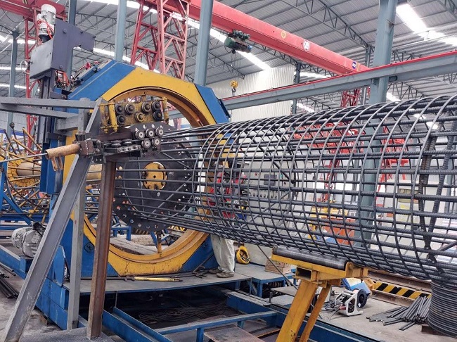 起初,项目部钢筋加工厂用滚笼机制作钢筋笼时,发现效果并不理想,主要原因在于这台滚笼机调直器位置太靠前,缠绕筋从中穿过后,阻碍了加劲箍的装填,导致钢筋笼直径难以固定,不仅整体性受到影响,在起吊过程中也容易变型。为确保工效和质量,他们干脆弃之不用,直接用人工来代替。