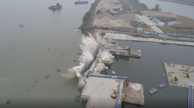 10月29日,在三千里汉江襄阳鱼梁洲分汊的东汊水域,中交二航局组织完成了两次水下爆破,在岸堤处开了“两道门”,汉江首条沉管隧道即将进行浮运和水下安装。