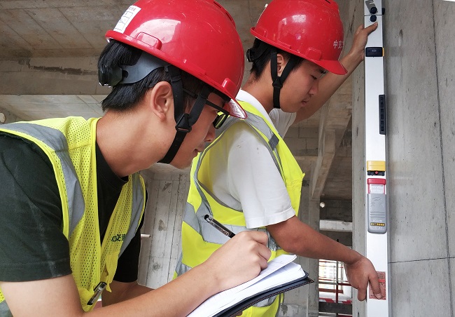 “来,检测墙面垂直度和平整度。”钟相章带着技术员用靠尺一一检测。“如此光滑如镜的墙面确实不一般!靠尺的影子在墙面上依稀可见。”从检测数据来看,墙面垂直度、平整度等都比采用传统木模工艺高出一大截,这无疑让钟相章等感到十分惊喜。