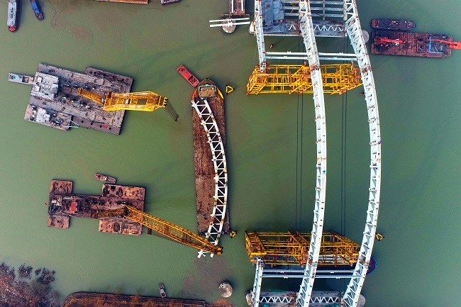 拱肋安装施工面临空间对位控制难度高、吊装难度大、安全风险高、对接精度要求高、受封航时间限制大等挑战,中交二航局项目团队针对各个难点逐一击破,全过程严格把关,全力推进大桥安全高效施工,为项目2021年全面贯通奠定了基础。
