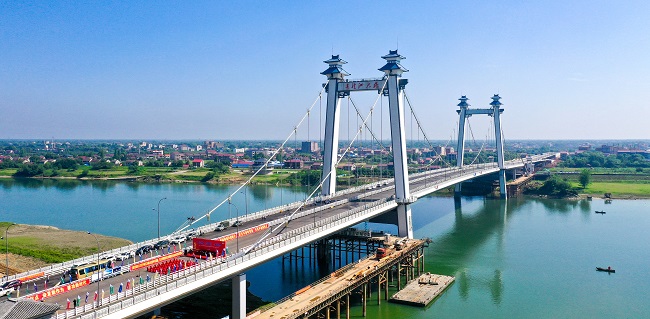 作为益阳市的一项重大民生工程,大桥总投资8亿元,设计使用寿命100年。自2017年6月开工建设以来,中交二航局项目团队团结协作、攻坚克难,坚持高质量高标准完成各项建设任务,先后荣获“湖南省2017年度劳动竞赛先进班组”、湖南省“工人先锋号”等荣誉。项目连续蝉联益阳市半年度普通国省道及重点水运工程项目综合督查评比第一名。