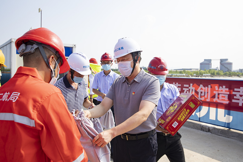 炎炎夏日,暑气升腾。8月4日,湖北省襄阳市委常委赵芝斌,襄阳市总工会党组书记、常务副主席汪艺琼一行慰问中交二航局东西轴线项目一线建设者。