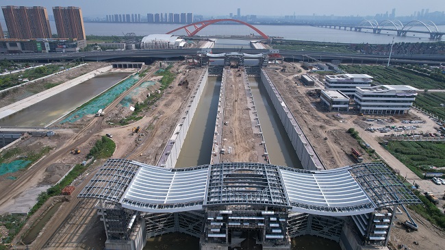 6月15日,中交二航局承建的京杭运河浙江段三级航道整治工程杭州段八堡船闸项目全面通水。