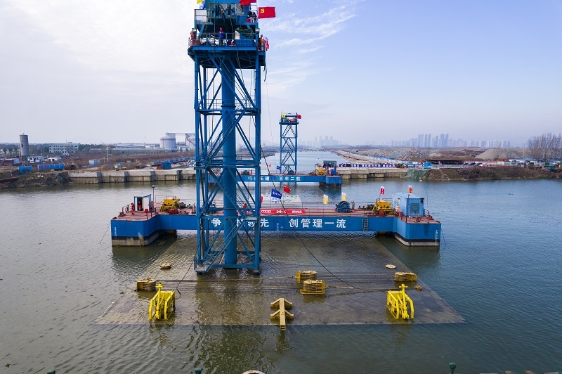 图为:襄阳市东西轴线工程东汊水域最后一节沉管下放 央广网发 通讯员供图