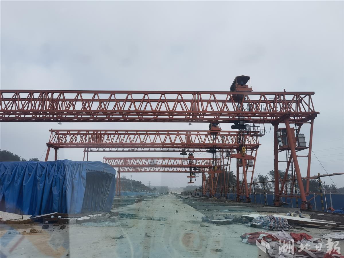 梁场已逐渐拆除,进入路面铺装阶段。(湖北日报全媒记者 戴辉 摄)