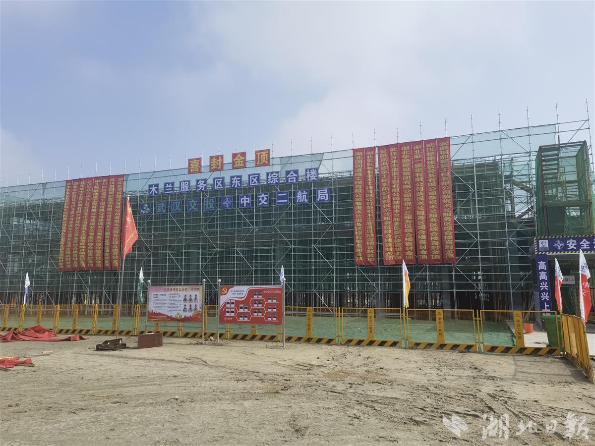 武大高速木兰服务区封顶。(湖北日报全媒记者 戴辉 摄)