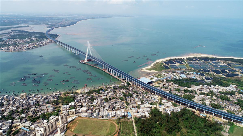 为应对大桥面临的抗风抗震安全风险,让大桥主塔矗立海中稳如泰山、坚如磐石,项目团队先后攻克了4.3米超大直径钢管复合桩施工、单个逾8000方超大体积分离式承台浇筑、高索塔空间双曲面液压爬模施工等关键技术难题,确保了大桥主塔拥有更加优越的抗风抗震性能。