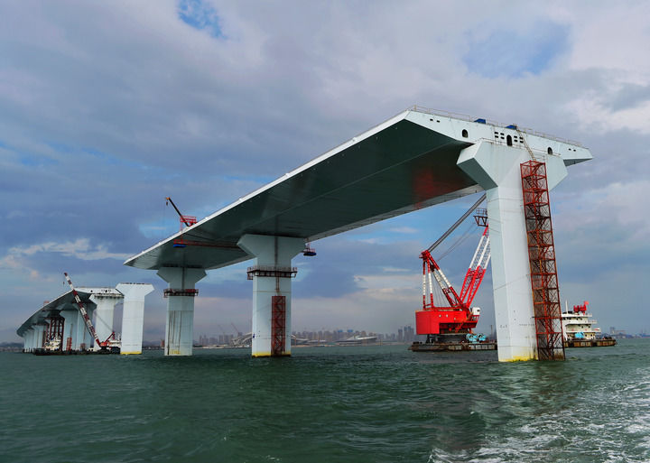 目前,由中交二航局等单位承建的厦门第二东通道(翔安大桥)施工进展顺利。厦门第二东通道(翔安大桥)全长约12公里。大桥互通区主体结构预计6月30日完成,8月底实现全桥合龙。(新华社记者魏培全 摄影报道)