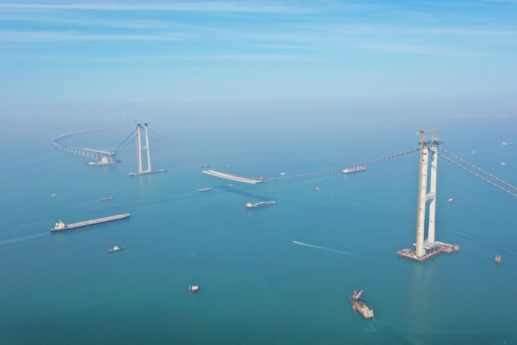 眼下,中交二航局正在同时建造7座世界第一桥、10座跨长江大桥、6座跨度超1500米大桥。世界上跨度超2000米的3座大桥,2座在中国,均为“二航造”。江苏张靖皋长江大桥、江苏常泰长江大桥、广东深中通道伶仃洋大桥、广东狮子洋跨海通道等多座世界级大桥,已经成为展示国家实力,培育先进科技的最好舞台。