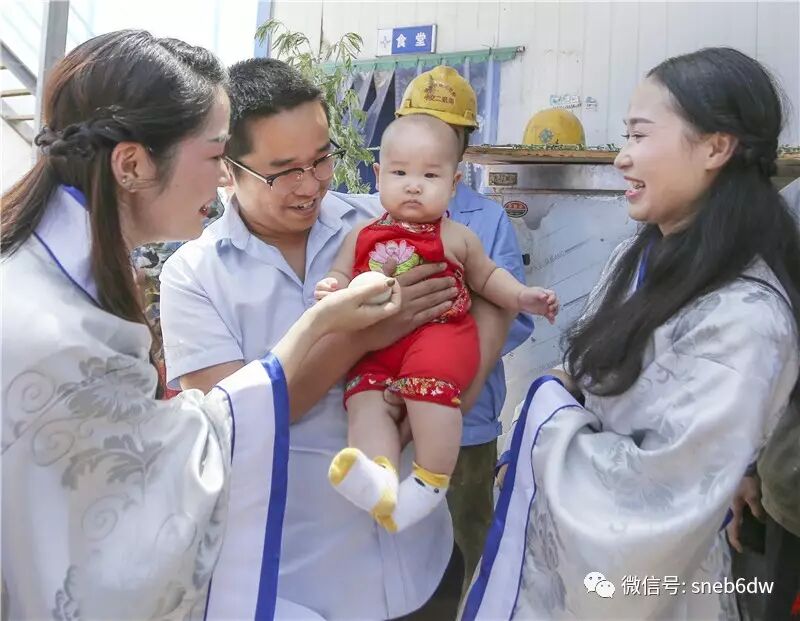 图片里的福娃名字叫泽泽,是工地女职工曹文方的二胎宝宝,泽泽的爸爸是一分部一架子队的队长。每周来总部开生产例会的时候,爸爸就会来看看孩子。这爷倆五官表情神态一摸一样,唯一区别就是肤色,爸爸在工地风吹日晒的皮肤黝黑,宝宝肌肤雪白稚嫩,抱在一起反差萌很是有趣!(黄继惠)
