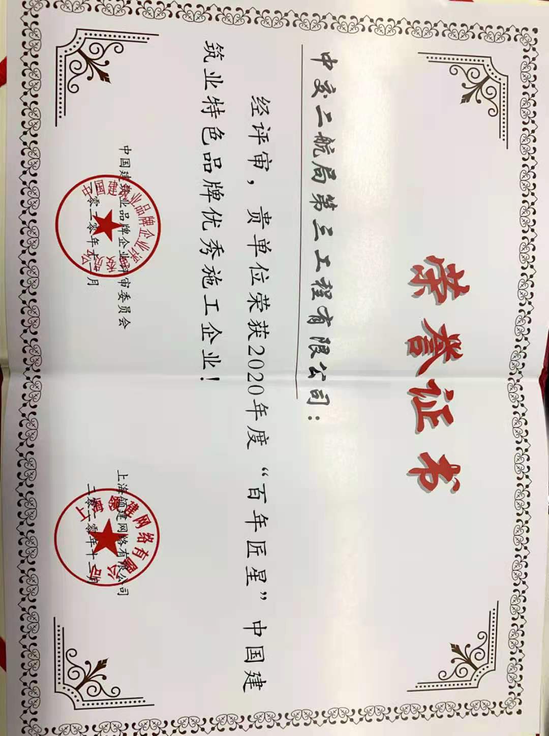 2020年“百年匠心”中国建筑业特色品牌优秀施工企业