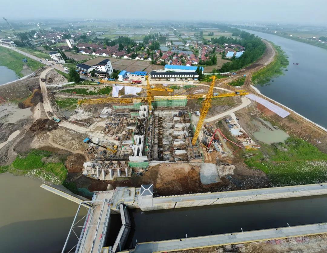 4月28日,随着最后一方混凝土浇筑完成,六门闸排涝工程泵站出口段顺利封顶,为项目在“一枯”期内完成下闸挡水目标奠定了坚实基础。该泵站出口段长12.8米、宽58.5米、高15米,由底板、泵墩、顶板、胸墙、挡水墙等组成。其中底板大体积混凝土施工采用了温控系统,顶板采用满堂支架现浇施工,泵墩、胸墙采用分段分层方式施工,整体施工累计使用钢筋1800余吨,浇筑混凝土约2.3万立方。