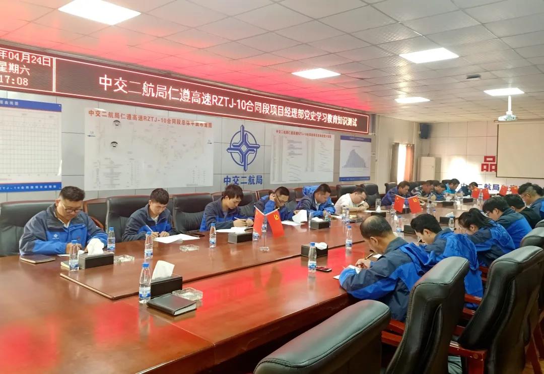 为庆祝中国共产党成立100周年,切实增强项目部员工党性修养,丰富员工的党史知识,检验最近一段时间党史学习情况,确保党史学习教育走深走实,4月24日,仁遵高速项目开展党史学习教育知识测试活动,项目领导班子、部门负责人、全体党员、青年团员参加。