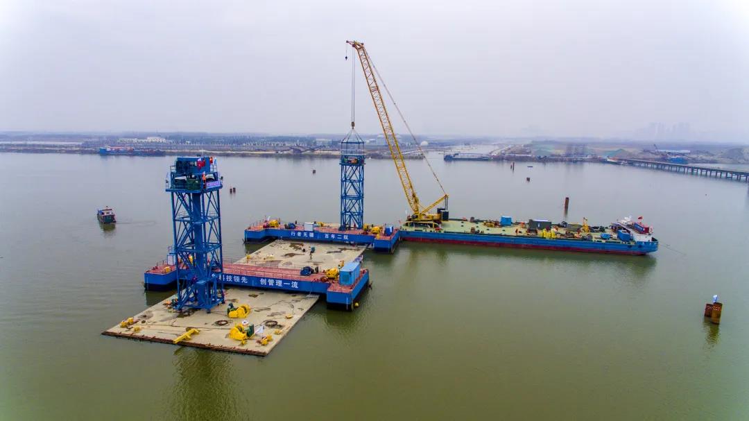 此次首节沉放对接的是项目东汊水域E6管节,与东津陆上岸堤对接。在汉江水下10组锚桩与沉管之上8台卷扬机的牵引下,沉管抵达指定位置,然后经过3小时的注水,沉管缓缓下沉至汉江水下25米处,通过项目自主研发的沉管施工全过程信息监控系统检测调控,项目团队实时掌握沉管下沉过程中的姿态,确保对接全过程的安全和精度。