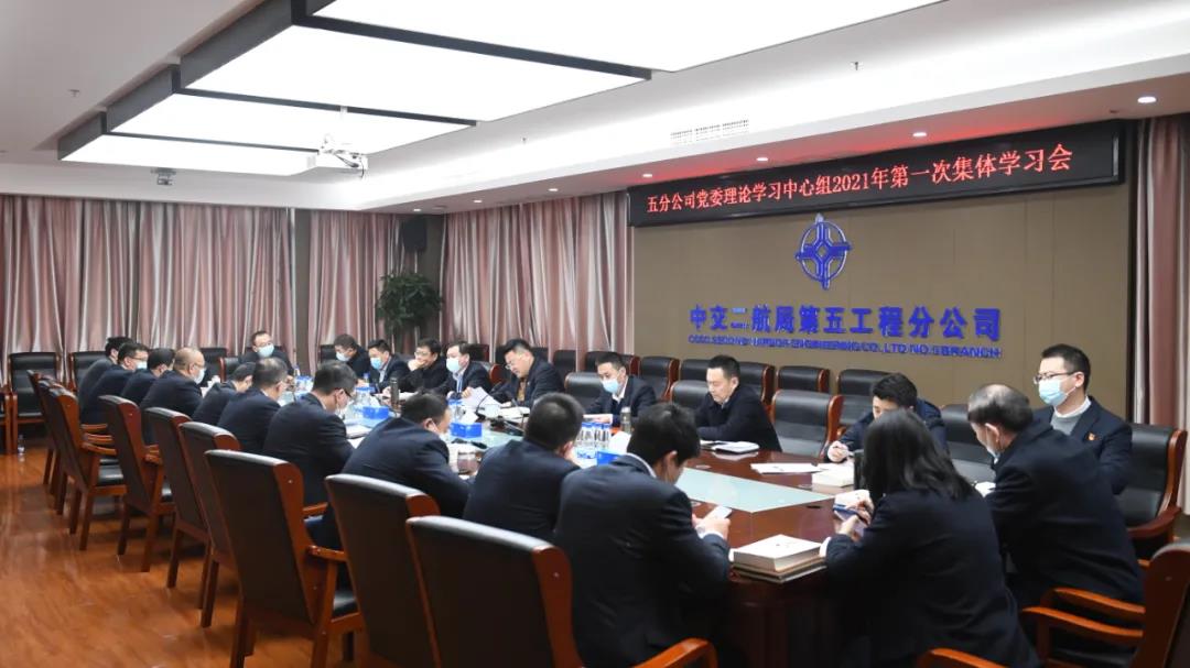 2月5日下午,五分公司党委在总部召开2021年首次理论学习中心组集体学习会,分公司党委理论学习中心组全体成员、相关部门负责人共23人参加了本次学习。分公司党委书记、经理李志成主持学习。