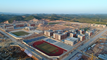 藤县教育集中区项目规划建设学校6所,其中高中2所,初中、小学、幼儿园、特殊教育学校各一所,总用地面积502.4亩,总建筑面积173066平方米,教育建设规模为233班,可容纳学生人数10142人,总投资5.954亿元,于2018年8月开工,预计2020年9月全部建成并投入使用。其中,藤县教育集中区小学按36个班,45人/班,在校学生人数1600人的规模建设,规划用地面积约60亩,总建筑面积18590平方米,于2019年9月1日开始施工,计划今年年底完成主体施工。
