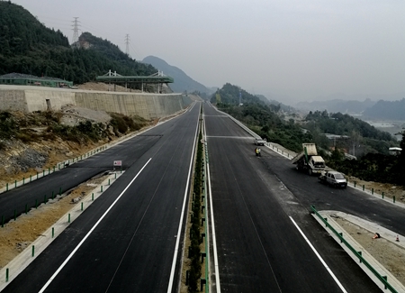 建恩高速主线路面摊铺施工的顺利完成标志着项目主体工程基本完工,目前项目部正全力进行附属工程扫尾,为12月底项目通车做最后冲刺。