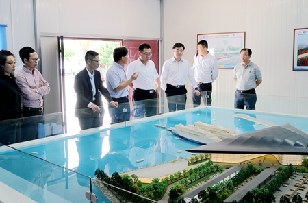 陈重一行首先来到项目部沙盘展示厅,了解项目概况及当前施工进展,随后在会议室听取了项目整体情况汇报,并对项目取得的阶段性成果表示肯定。