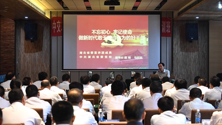 湖北省委党校教授马跃珍以《不忘初心 牢记使命——做新时代敢于担当作为的好干部》为题,对开展“不忘初心 牢记使命”主题教育的重大意义、时代内涵和践行使命担当等内容进行了详细讲解。