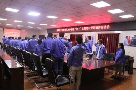 为重温党的光辉历史,激发项目全体党员的爱国爱党热情,增强党性修养,宜昌伍家岗长江大桥项目党支部以“不忘初心、牢记使命”为主题,开展支部书记讲党课、重温入党誓词、合唱国歌、党员谈心、作风整顿工作总结等“五个一”活动,献礼党的生日。(雷伟利)
