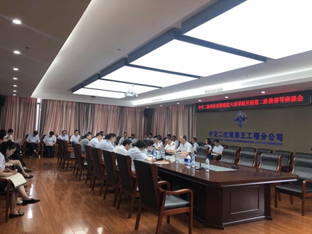 6月25日,中交二航局作风整顿第六督导组到五分公司组织开展第二阶段督导,并召开座谈会。第六督导组组长薛安青,督导组组员朱清平、祝冯火到会督导。五分公司领导班子成员、各部门负责人、职工代表、四大中心经理和书记共计39人参会,会议由朱清平主持。