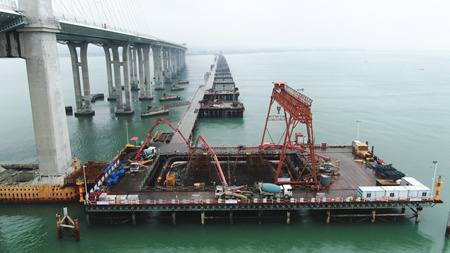 6月14日,福厦铁路泉州湾跨海大桥76号主墩承台浇筑完成。至此,该桥双主墩承台均已浇筑完毕,海湾中成功制造两座小型“人工岛”,正式进入主塔施工阶段。
