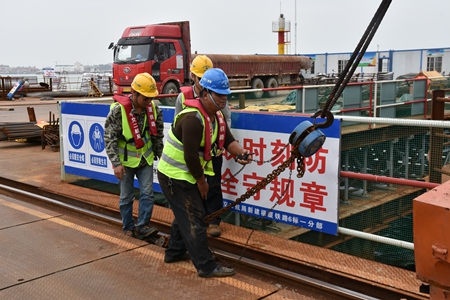 泉州湾跨海大桥地处福建沿海,自6月开始,福建正式进入了汛期和台风多发期,同时也是项目部施工大干的时期,结合去年从“玉兔”、“玛丽亚”、“西马仑”等多个台风中总结出的经验与教训,项目部防汛抗台安全小组秉承“防微杜渐,忧在为荫”的理念,通过应急演练的方式,深化施工人员的应急和隐患意识,检验预案的实操性,提高了海上作业班组安全意识与能力。
