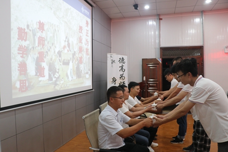 随后与会人员共同学习了《孔子师徒各言志》,感悟儒家文化精神。各位导师依次发表勉励徒弟要“先做人、后做事、再做学问”,不怕犯错,勤学苦练,厚积薄发,并表示会言传身教,倾囊相授,教导徒弟做人做事。