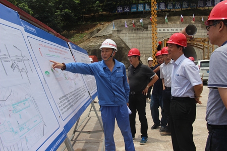 周荣一行听取了项目整体情况及施工进度的汇报,并深入西双版纳隧道横洞施工现场,细致了解了隧道地质围岩特点及施工过程中存在的困难。