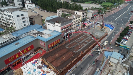 8月16日晚8时,襄阳市樊城区主干道上,两辆混凝土泵车在夜色中紧张作业,正在对庞公大桥北引桥第一联箱梁进行混凝土浇筑施工,经过35小时的不间断作业,浇筑任务于18日上午8时顺利完成,为后续施工打下了坚实基础。