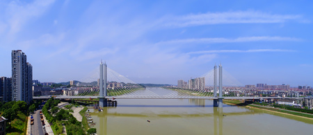 西流湾大桥是319国道经益阳市中心城区局部改线后跨越资江的公路特大桥,同时也是益阳市规划过江的交通大动脉之一,被列入湖南省“十二五”干线公路建设重点规划。该桥梁全长1080.6米,跨江主桥长530米,为双塔双索面预应力混凝土斜拉桥,主塔为“凤凰展翅”造型,高108.26米,主梁宽30米,按城市Ⅰ级主干道标准设计为双向6车道,时速50公里。